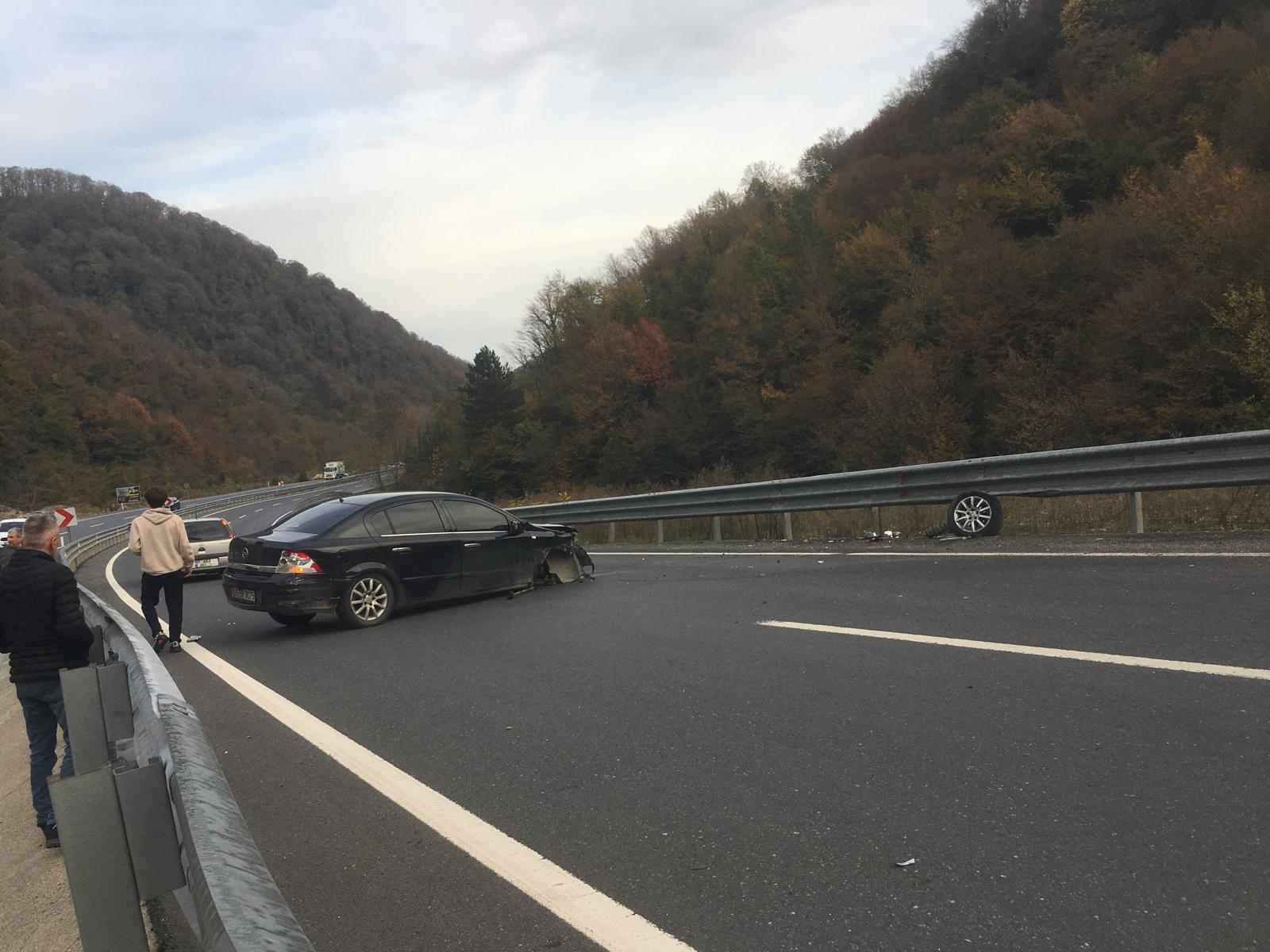 Edinilen bilgiye göre, Ilıksu mevkiindeki çift şeritli otoyolda meydana gelen kazada, sürücü öğrenilemeyen 06 BR 3075 plakalı otomobil, bilinmeyen bir nedenle direksiyon hakimiyetini kaybetti. Kontrolden çıkan otomobil, yol kenarındaki bariyere çarparak savruldu. Kazanın şiddetiyle otomobilde maddi hasar olurken, ölen ya da yaralanan olmadı.