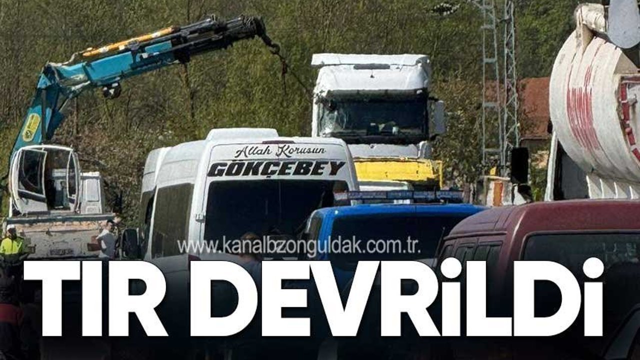 Edinilen bilgilere göre kaza, Ankara kara yolu üzerinde yaşandı. Sürücüsünün direksiyon hakimiyetini kaybettiği TIR, kontrolden çıkarak yan yattı. Devrilen aracın dorsesinde bulunan yükler ise yol kenarına savruldu.