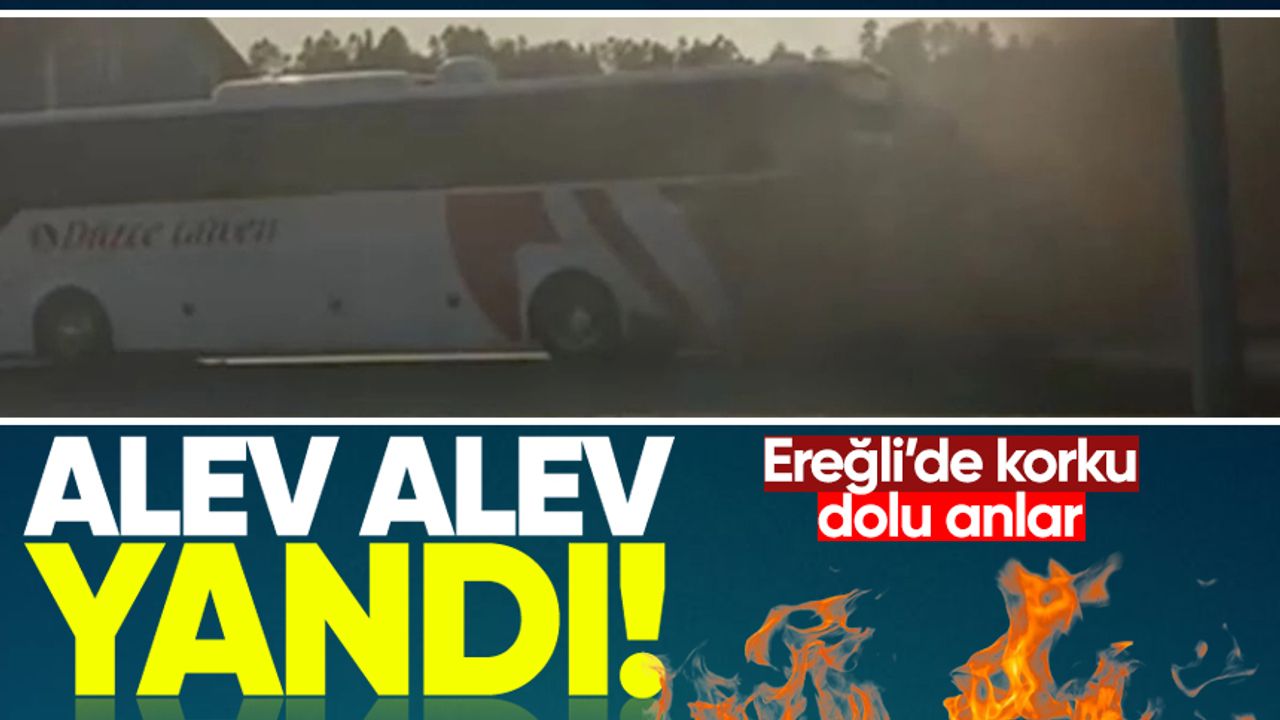 Karadeniz Ereğli ilçesinde şehirler arası otobüsün motor kısmından çıkan duman paniğe neden oldu.