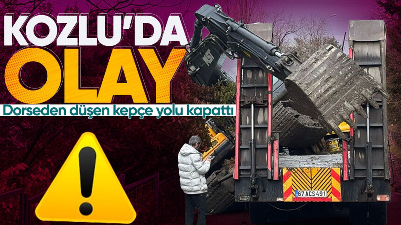 Zonguldak’ın Kozlu ilçesinde tırın dorsesinden yola düşen kepçe trafiğin durmasına neden oldu.
