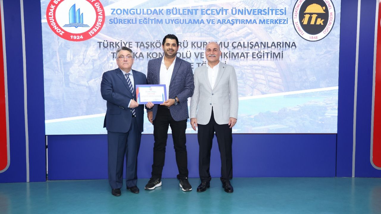 Zonguldak Bülent Ecevit Üniversitesi Sürekli Eğitim Merkezi tarafından düzenlenen ve 12 Haziran – 3 Temmuz tarihleri arasında gerçekleştirilen eğitim programı kapsamında, TTK mühendislerine üniversitenin Maden Mühendisliği Bölümü öğretim üyeleri tarafından "Tahkimat ve Tabaka Kontrolü, Yeraltı Açıklıklarının Tasarımı ve Galerilerde Tahkimat, Uzunayaklarda Tabaka Kontrolü ile Galerilerde Tahkimat Tasarımı Modellemesi için Sayısal Çözümler" başlıklı eğitimler verildi. Eğitimlerini başarıyla tamamlayan katılımcılara sertifikalarının takdim edilmesi amacıyla düzenlenen tören; aziz şehitlerin anısına saygı duruşu ve İstiklal Marşı’nın okunmasıyla başladı.