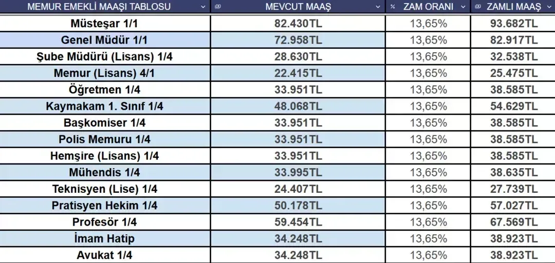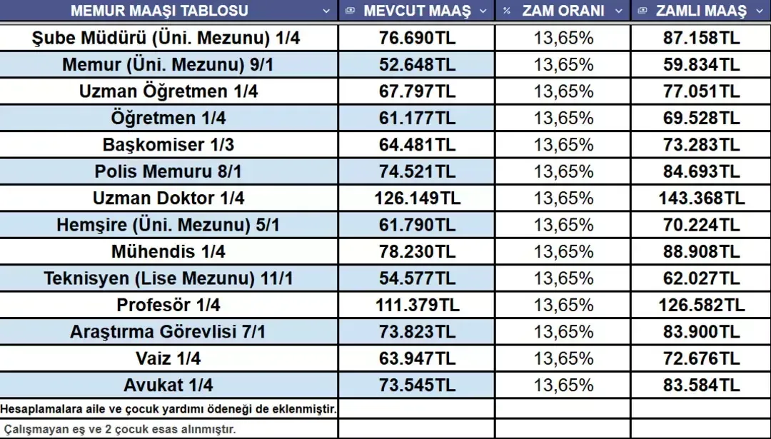 İŞTE YENİ ZAMLI MAAŞLAR: