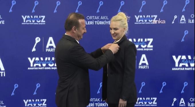 CHP’den istifa ederek, Anahtar Parti’ye katılan Kadın, Aile ve Sosyal Politikalar Başkanlığı görevine getirilen Müftüoğlu’na parti rozetini Genel Başkan Yavuz Ağıralioğlu taktı.