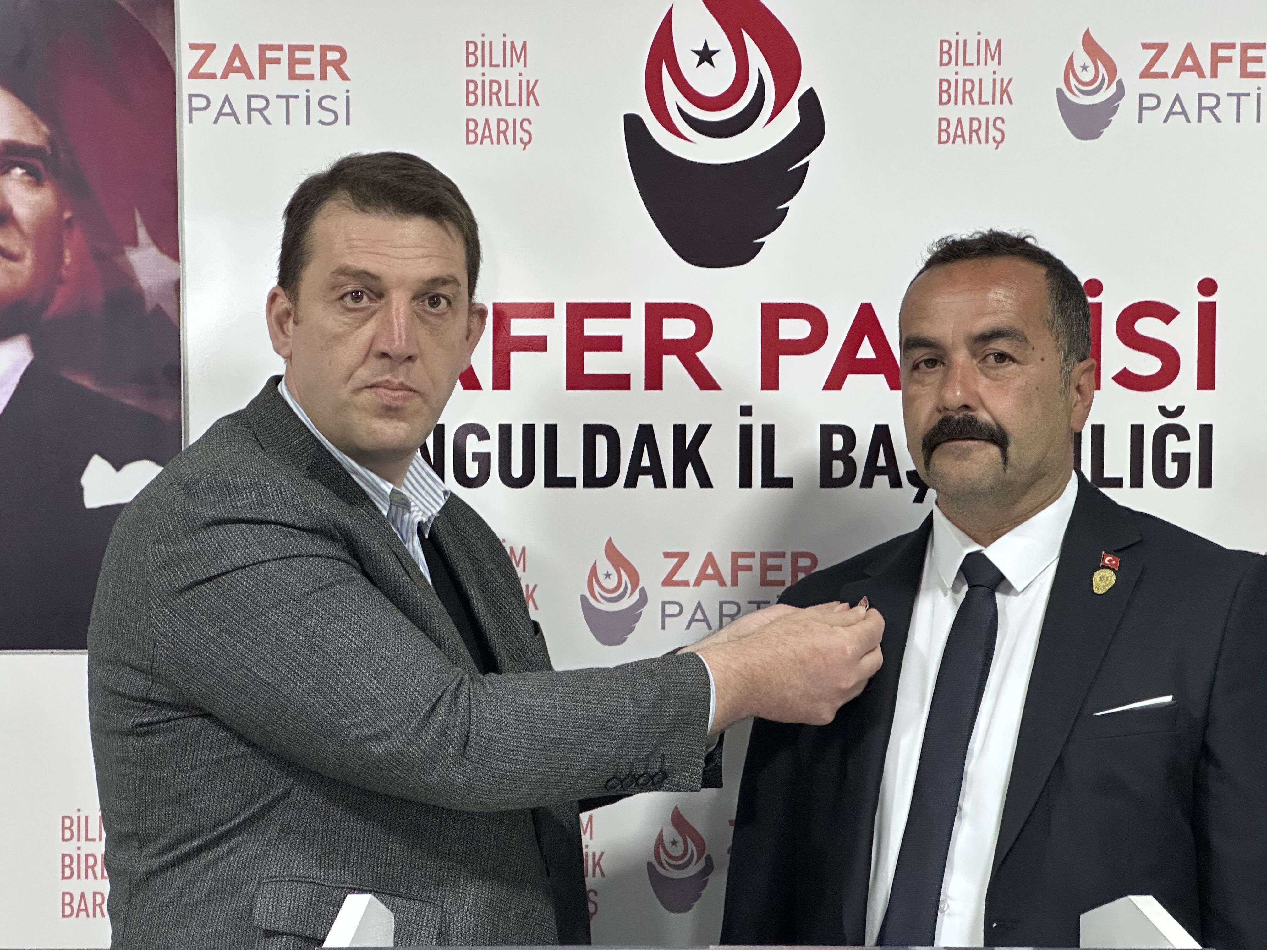 Zonguldak’ta Milliyetçi Hareket Partisi’nden (MHP) istifa eden, aralarında eski yöneticilerin de yer aldığı yaklaşık 50 kişilik grup, Zafer Partisi saflarına katıldı. Toplu katılım töreni, Zafer Partisi Zonguldak İl Başkanlığı tarafından düzenlendi. Törende yeni üyelere rozetleri İl Başkanı Oğuzhan Turhan tarafından takdim edildi.