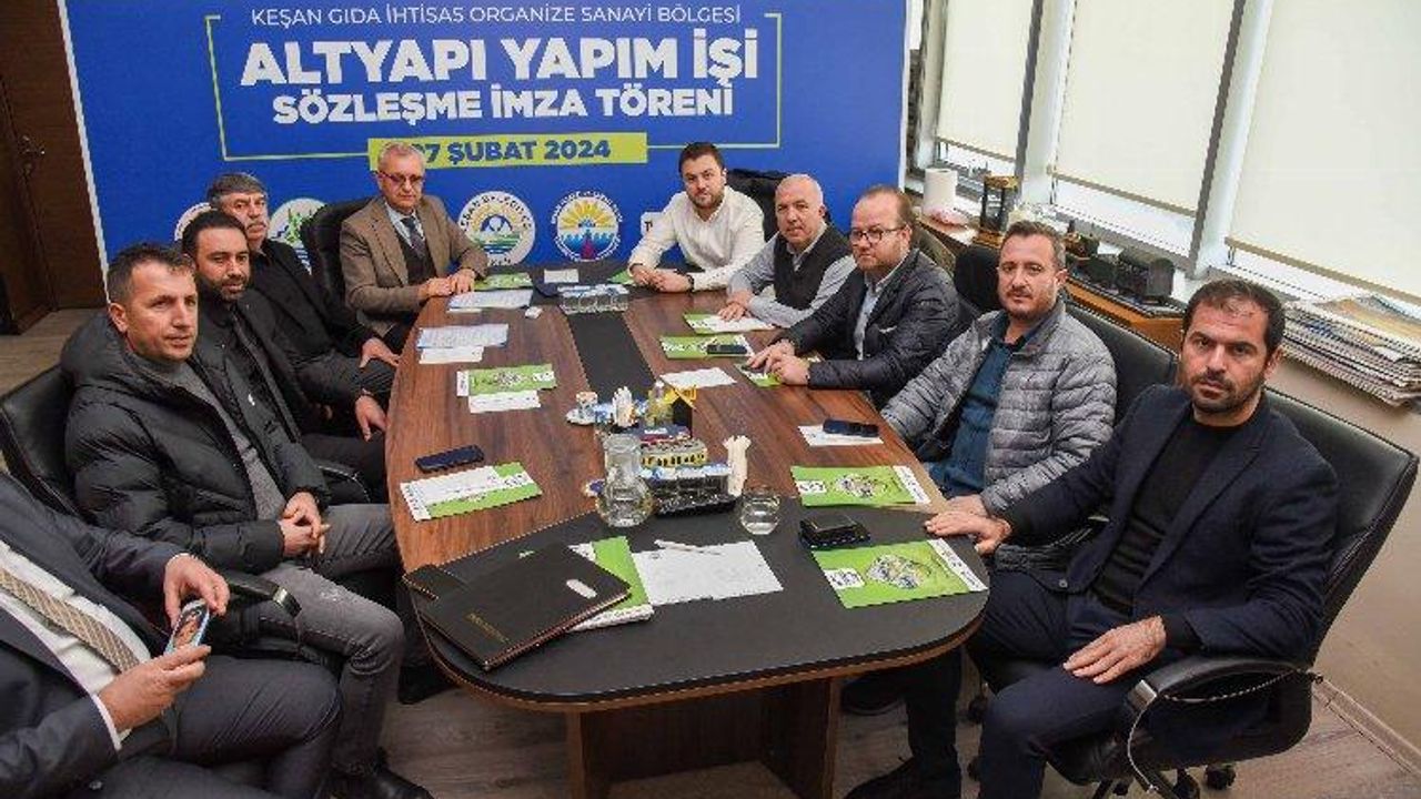 Keşan Gıda OSB Altyapı Yapım İşi Sözleşmesi, 7 Şubat 2024 Çarşamba günü düzenlenen program ile imzalandı.Erdoğan DEMİR / EDİRNE / (İGFA) - Keşan Belediyesi Başkanlık Makamı’nda başlayan programa; Keşan Gıda OSB müteşebbis heyeti üyeleri Keşan Belediye Başkanı Mustafa Helvacıoğlu, Keşan Ticaret Borsası Meclis Başkanı Kemalettin Uslu, Keşan Ticaret ve Sanayi Odası Yönetim Kurulu Başkanı İsmail Şapçı,Yönetim Kurulu Başkan Yardımcısı Orkun Özkaya, Keşan Ticaret ve Sanayi Odası Komite Başkanı Aydın Meriç, Keşan Gıda OSB Müdürü Murat Sınar, yüklenici firma Asil İnşaat Sahibi Ramazan Kaya, Genel Koordinatör Sedat Çelik ve Proje Müdürü Mustafa Özkan, Keşan Belediyesi Meclis Üyesi Nehir Gergin katıldı.