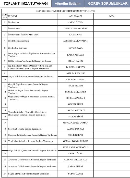 Görev bölümü yapan Nazmi Özden’in yönetim kurulunda görev ve sorumluluklar şu şekilde: