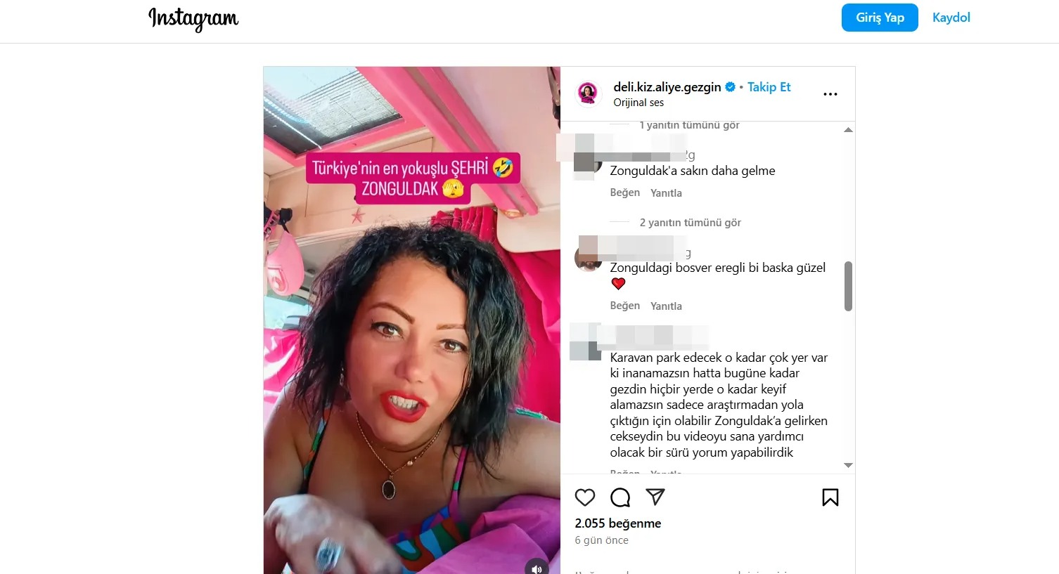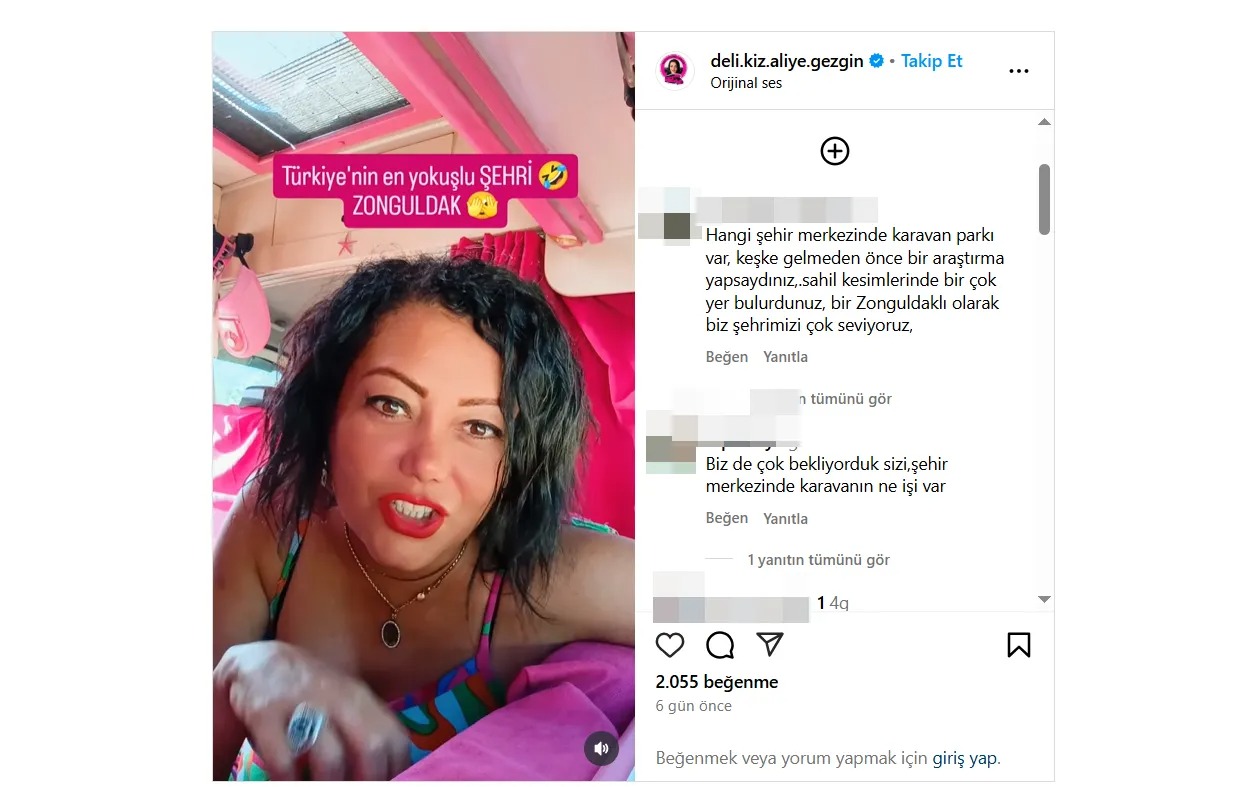 Sosyal medya fenomeni deli kız aliye gezgin adıyla tanınan Aliye Gezgin, karavanıyla bölgede konaklamak için Zonguldak’ı ziyaret etti.