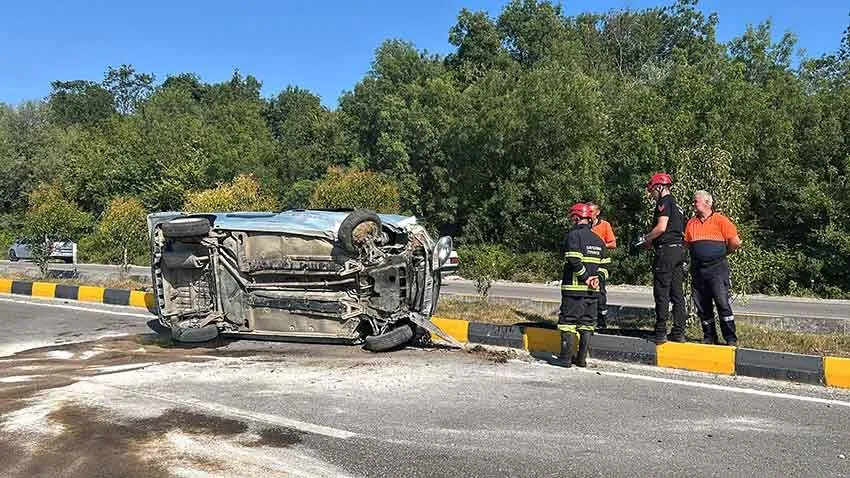 Kaza, öğle saatlerinde Perşembe Organize Sanayi Bölgesi (OSB) mevkisinde meydana geldi. Edinilen bilgilere göre, 74 ABA 432 plakalı otomobil, sürücüsünün direksiyon hakimiyetini kaybetmesi sonucu kontrolden çıkarak refüje devrildi.