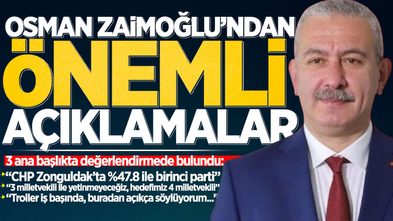 Cumhuriyet Halk Partisi (CHP) Zonguldak Merkez İlçe Başkanı Osman Zaimoğlu, düzenlenen basın toplantısında gündeme dair önemli açıklamalarda bulundu. Üç ana başlıkta değerlendirmelerde bulunan Zaimoğlu, hem son kamuoyu anketlerinin sonuçlarını paylaştı hem de sosyal medyada partiye yönelik eleştirilere sert yanıt verdi.