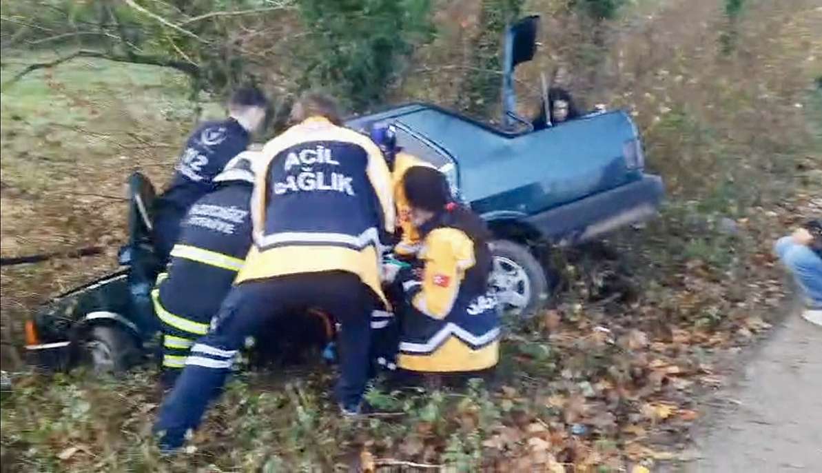 Kozcağız Belediye Mezarlığı mevkiinde meydana gelen kazada, kontrolden çıkan otomobil şarampole devrildi.