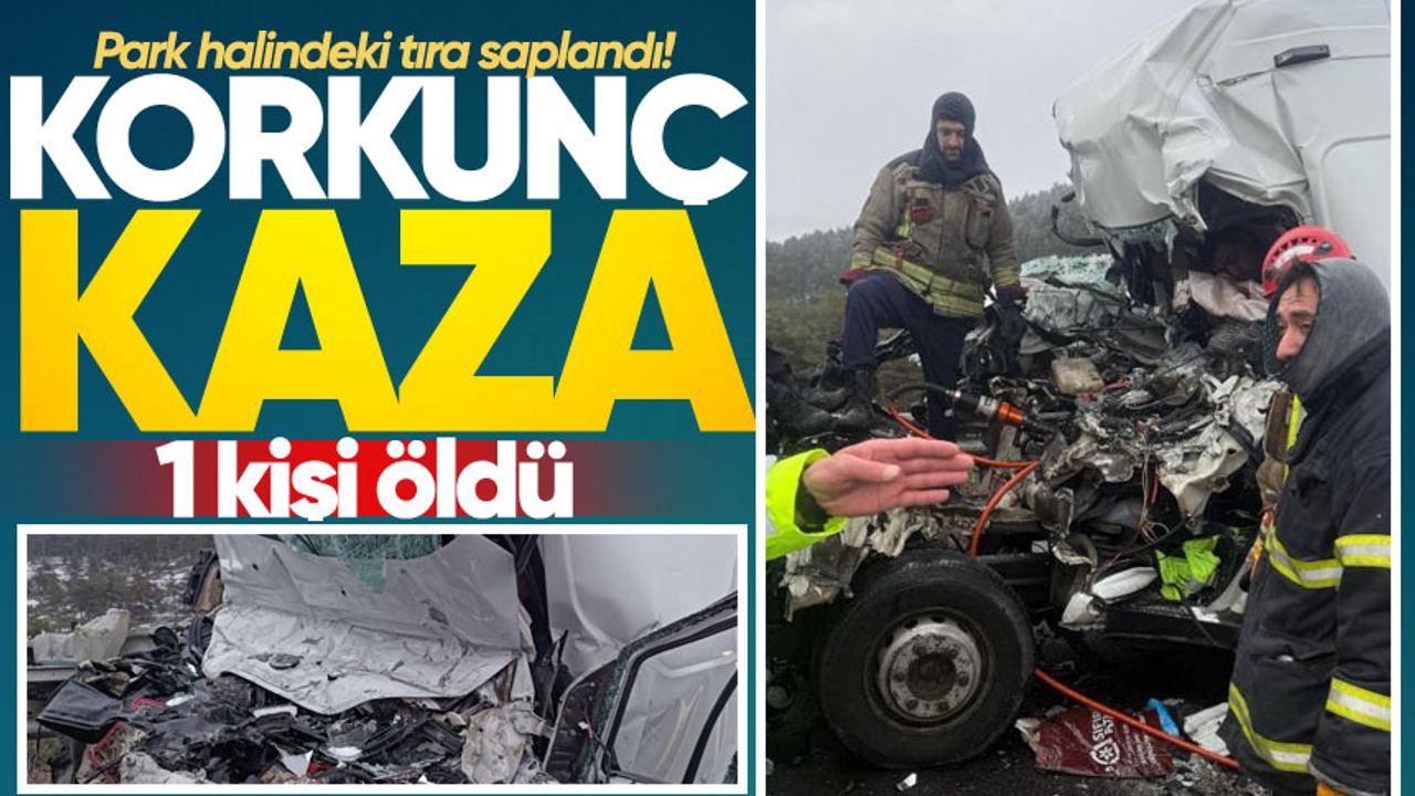 Bolu'da park halindeki tırın dorsesine çarpan minibüs sürücüsü hayatını kaybetti.