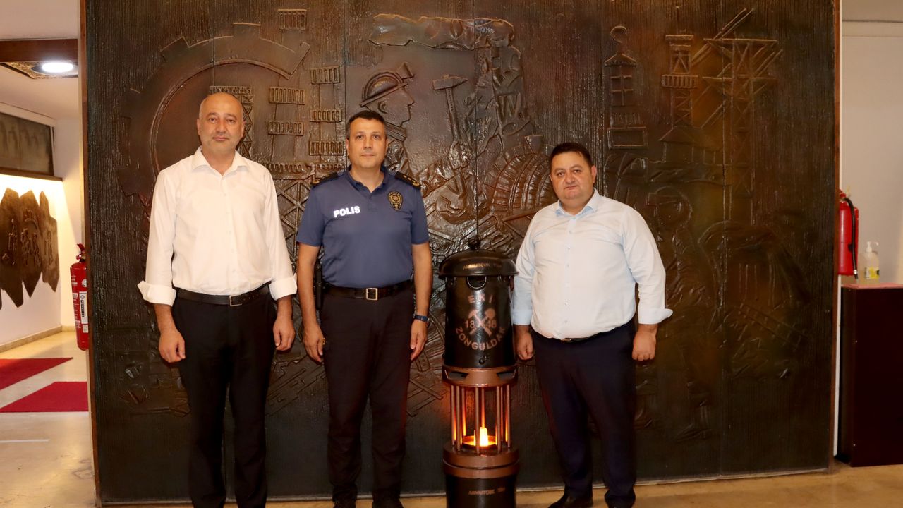 Zonguldak İl Emniyet Müdür Yardımcısı Rasim Karaman, emniyet teşkilatı mensuplarının çocuklarına burs imkanı sağlanması amacıyla Ankara’da gerçekleştirilen kermese verdiği destekler nedeniyle Genel Maden İşçileri Sendikası (GMİS) Genel Başkanı Hakan Yeşil’e teşekkür belgesi takdim etti.