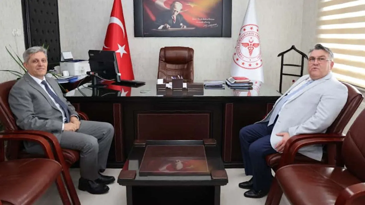 Ziyarette Rektör İsmail Hakkı Özölçer ile Sağlık Müdürü Mustafa Özkan Gün, sağlık alanında çalşmalar konusunda geniş kapsamlı olarak bilgi alışverişinde bulundular.