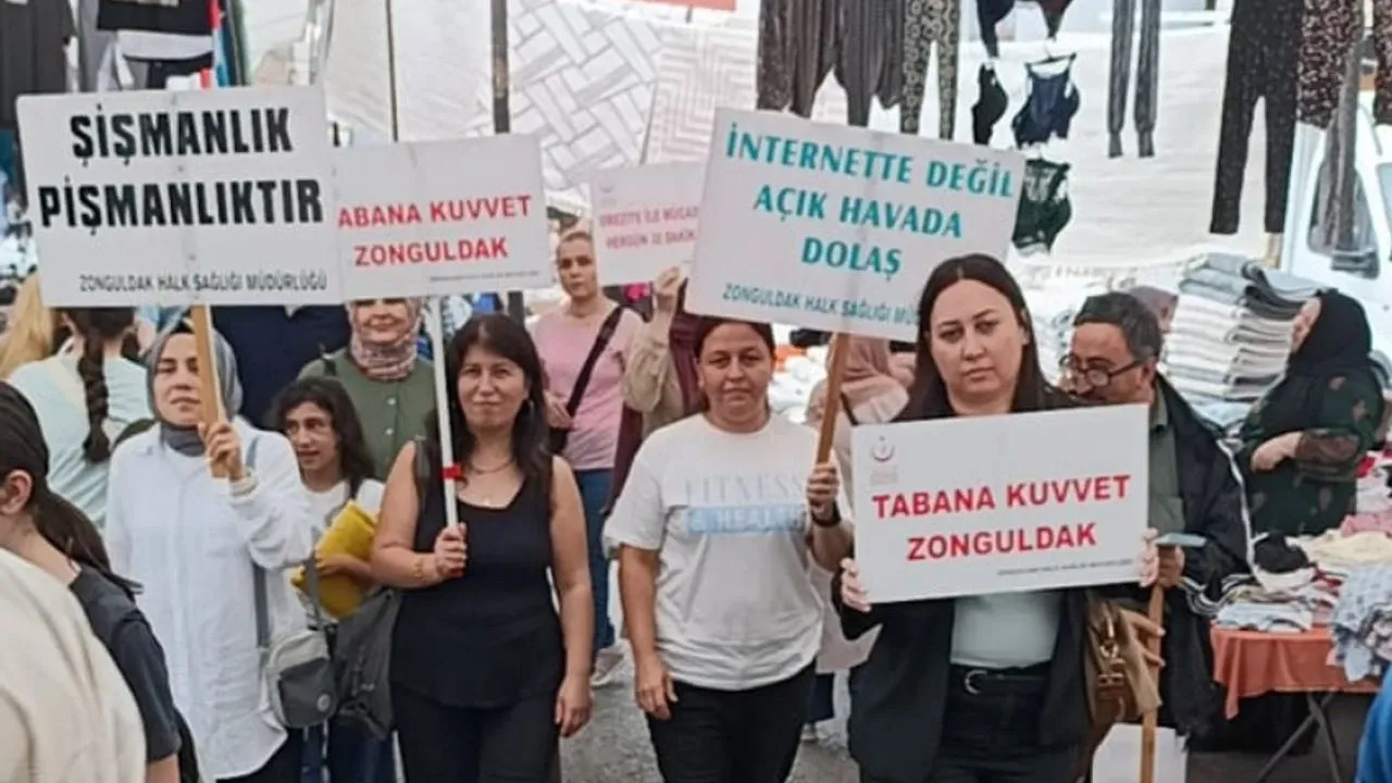 Yürüyüşe katılan sağlık çalışanları, taşıdıkları afişlerle dikkat çekti. “Tabana kuvvet Zonguldak”, “Obezite ile mücadele ediyoruz, her gün 30 dakika yürüyoruz”, “İnternete değil, açık havada dolaş”, “Her gün 10.000 adım at, yaşamına sağlık kat” ve “Şişmanlık pişmanlıktır” yazılı dövizler vatandaşlardan ilgi gördü. Katılımcılar ayrıca uyarıcı mesajlar içeren broşürlerle farkındalık oluşturdu.