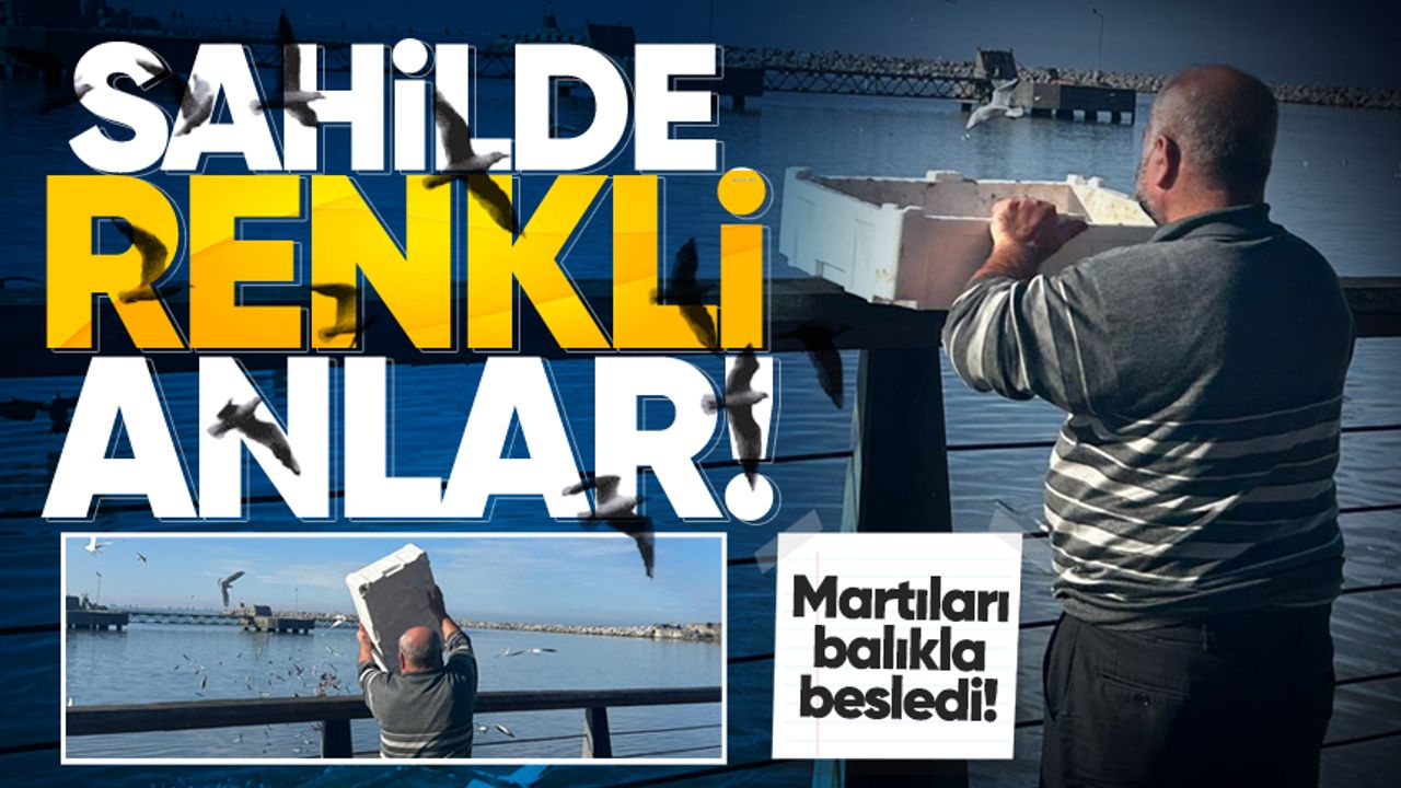 Bazı vatandaşlar martılara simit atarak eşlik ederken, bir kişi balık kasasındaki balıkları martılara vererek kuşları besledi. Sahilde kısa süreli hareketlilik yaşanırken, martıların yoğun şekilde balıkların etrafında toplanması renkli görüntülere sahne oldu.