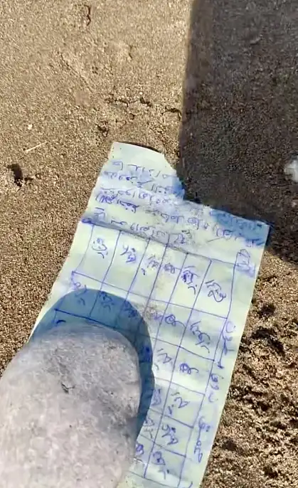 Kâğıdın, ırmağa bırakıldıktan sonra dalgalarla denize sürüklendiği ve sahile vurduğudüşünülüyor. Yazıların anlamı ve kime, ne amaçla yazıldığı ise gizemini koruyor.Bazı vatandaşlar tedirgin olurken, bazıları da “Korktuk, dokunmadan denize geri attık” dedi. Olay kısa sürede sahilde merak konusu oldu.