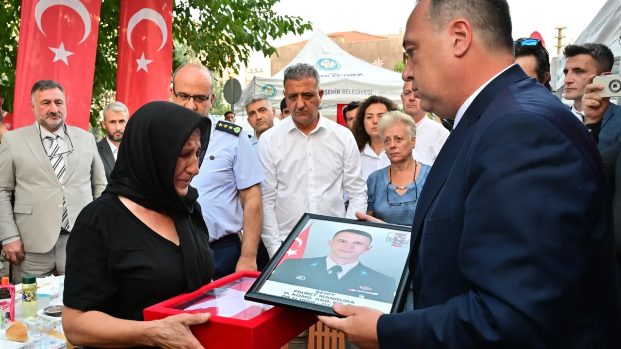 Irak’ın kuzeyinde sürdürülen Pençe-Kilit Harekatı kapsamında girdikleri mağarada metan gazına maruz kalarak şehit düşen Piyade Komando Astsubay Kıdemli Çavuş Fikret Mangura için Manisa Büyükşehir Belediyesi tarafından hayır yemeği düzenlendi. Büyükşehir Belediye Başkanı Besim Dutlulu, Mangura’nın annesine, Türk Bayrağı verip başsağlığı dileklerinde bulundu.