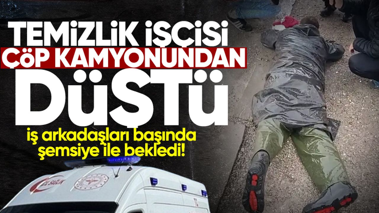 ÇÖP KAMYONU PERSONELİ DÜŞEREK YARALANDI