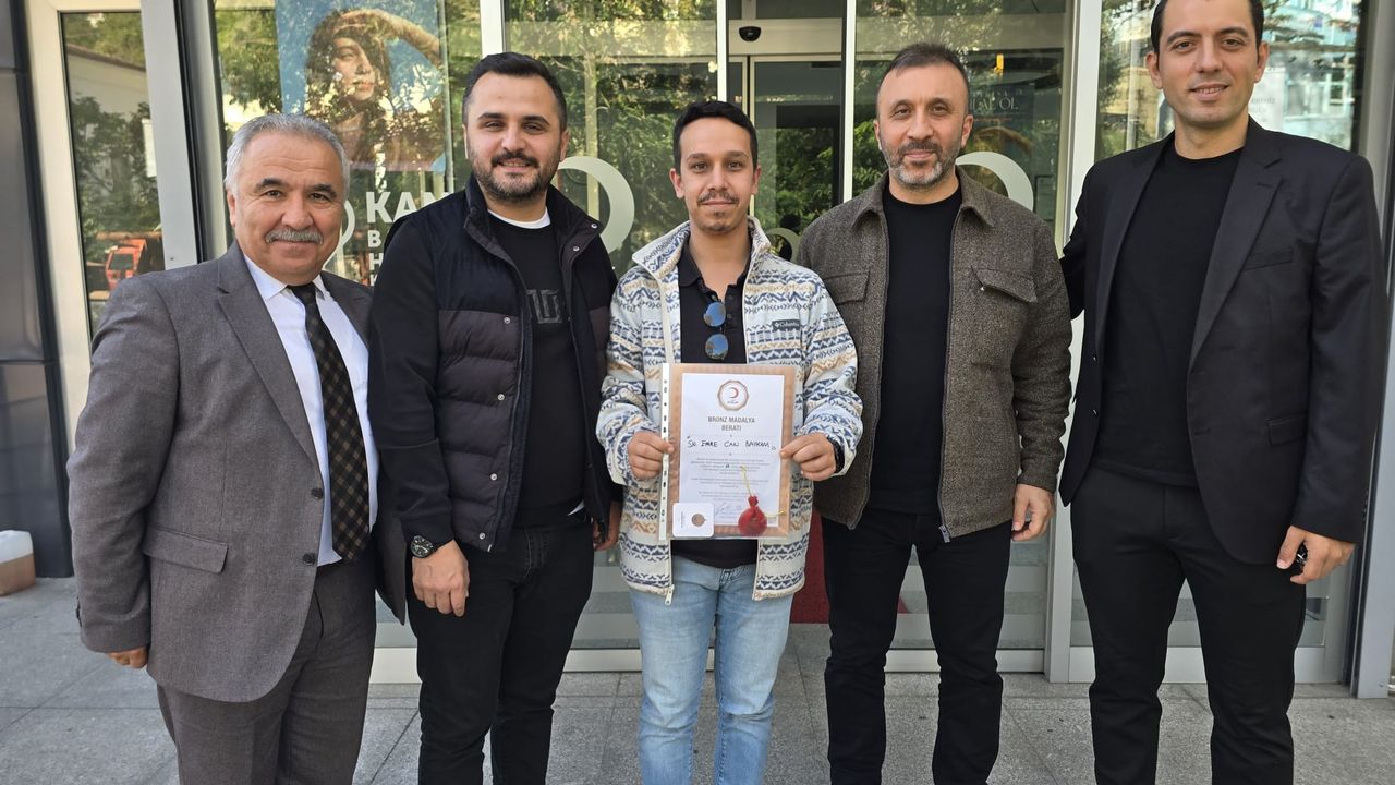 Kan bağışı sonrasında Kızılay Kan Bağışı Koordinatörü Hakan Ergin, kan bağışçıcısı Bayram’a teşekkür plaketi ve bronz madalya hediye etti.