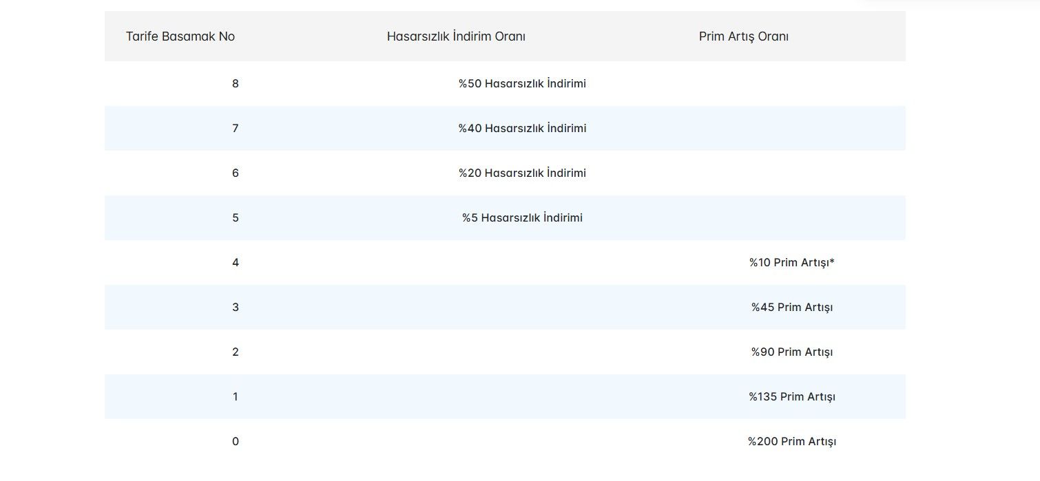 TRAFİK SİGORTASI HASARSIZLIK İNDİRİM ORANLARI