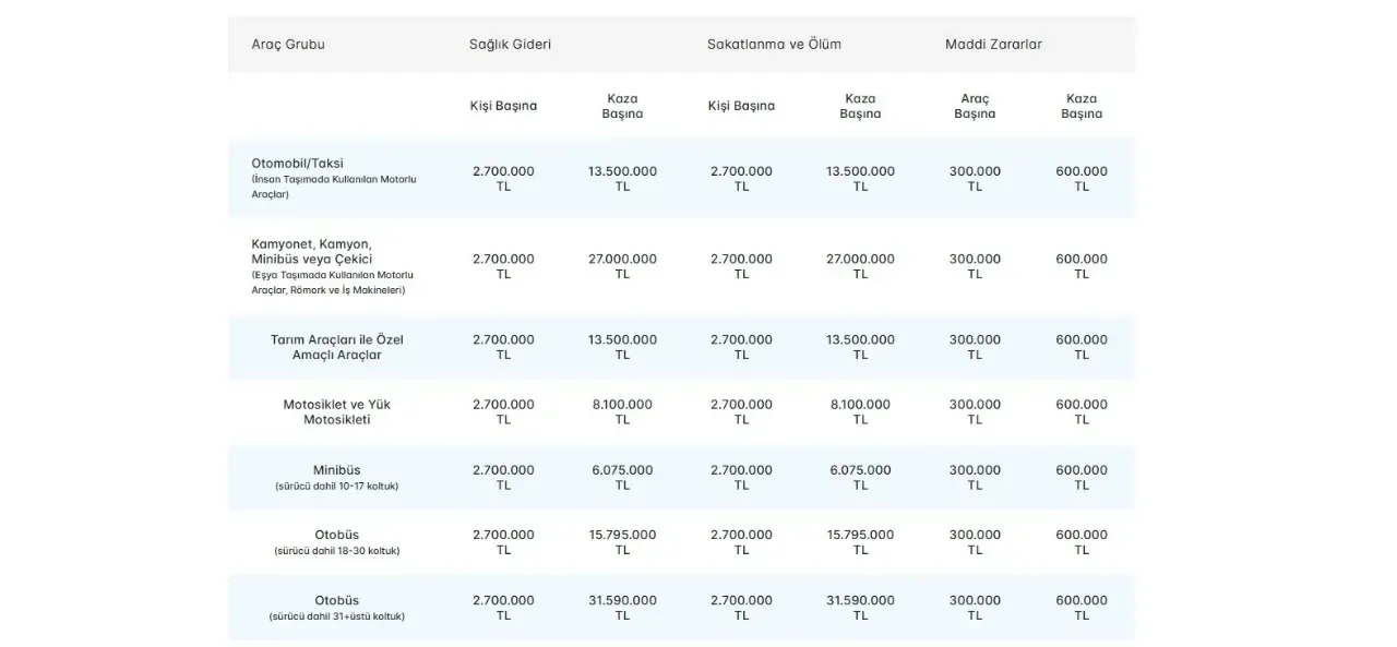 TRAFİK SİGORTASI TEMİNATLARI VE LİMİTLERİ