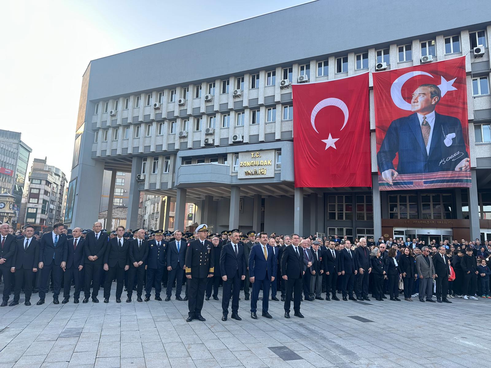 Türkiye Cumhuriyeti'nin kurucusu Gazi Mustafa Kemal Atatürk'ün vefatının 87. yılı sebebiyle Zonguldak Valiliği önünde anma töreni yapıldı. Saatler 09.05'i gösterdiğinde Zonguldak'ta da hayat durdu. Sirenlerle birlikte 2 dakikalık saygı duruşu gerçekleştirildi. Saygı duruşunun ardından İstiklal Marşı okunarak bayraklar yarıya indirildi. Anıtta düzenlenen anma töreni sonrasında, Devlet Güzel Sanatlar Galerisi'ndeki Atatürk Resimleri konulu sergi gezildi.