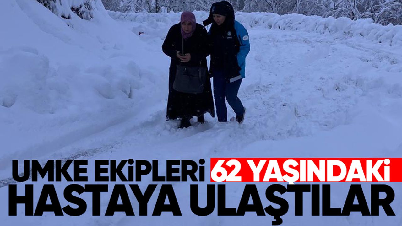 Zonguldak İl Sağlık Müdürlüğüne bağlı Acil Sağlık Hizmetleri Biriminde görevli UMKE ekipleri zorlu şartlarda 62 yaşındaki kadın hastaya ulaştılar.