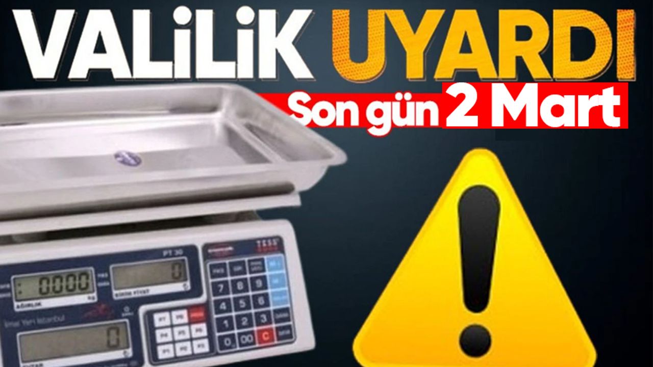 Zonguldak Valiliği, süresi içinde başvuru yapmayan veya eksik/hatalı ölçü aleti kullanan kişi ve kuruluşlar hakkında kanun gereği idari para cezası uygulanacağını ve yasal işlem başlatılacağını belirterek, vatandaşları ve esnafı son gün olan 2 Mart 2026 Pazartesi günü mesai bitimine kadar işlemlerini tamamlamaları konusunda uyardı.