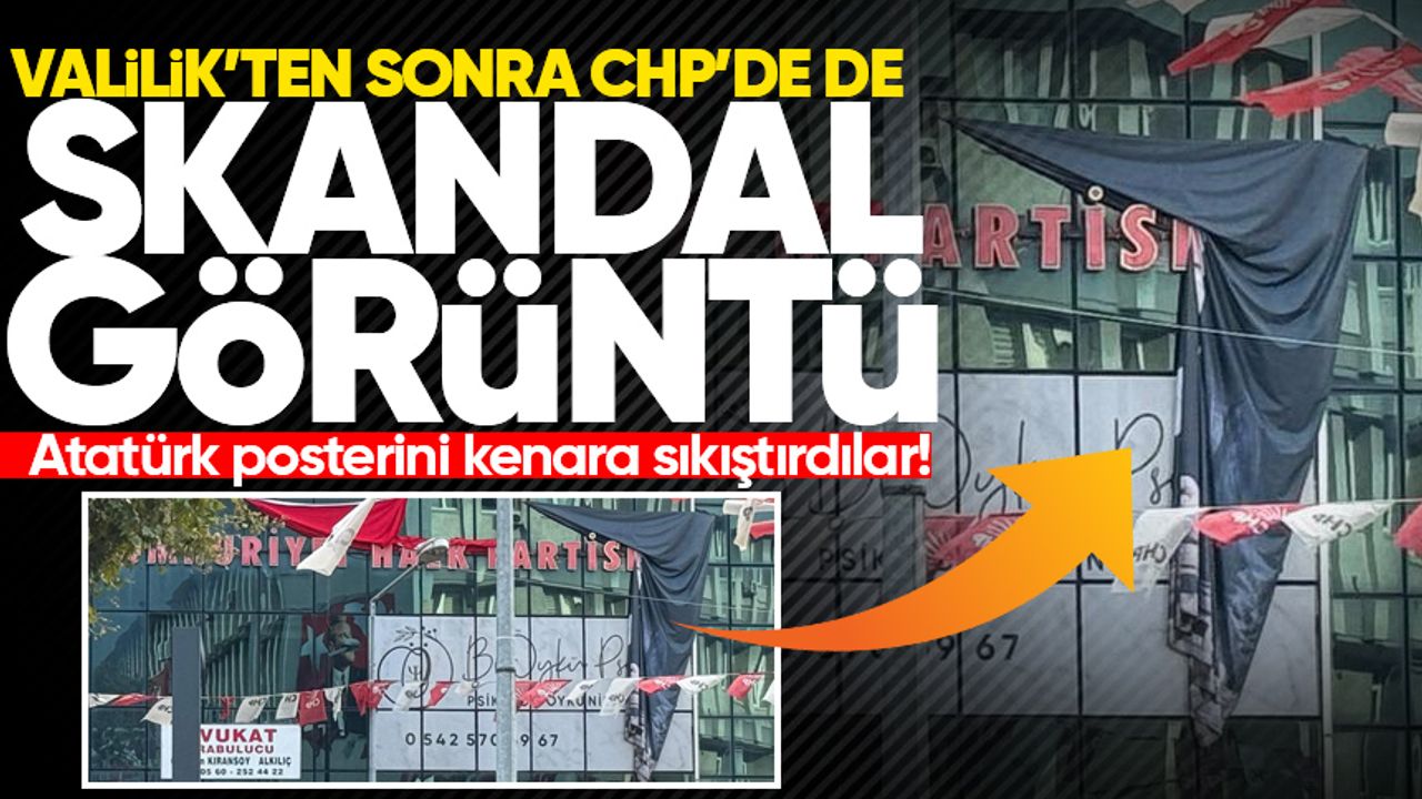 Ancak bu sabah çekilen görüntülerde ise Ulu Önder Mustafa Kemal Atatürk’ün kurduğu Cumhuriyet Halk Partisi (CHP)’nin Zonguldak İl Binasında da görüntü değişmedi. Atatürk Posteri kenarından toplanarak il başkanlığı yazısına sıkıştırıldı.