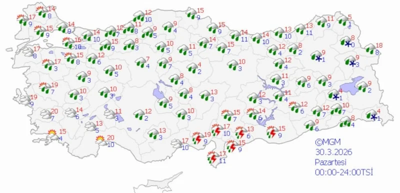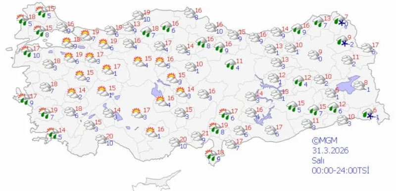 Meteoroloji Genel Müdürlüğü’nün (MGM) son verilerine göre, Türkiye genelinde yağışlı hava özellikle batı ve iç kesimleri etkileyecek. Sıcaklıklar mevsim normalleri civarında seyredecek.