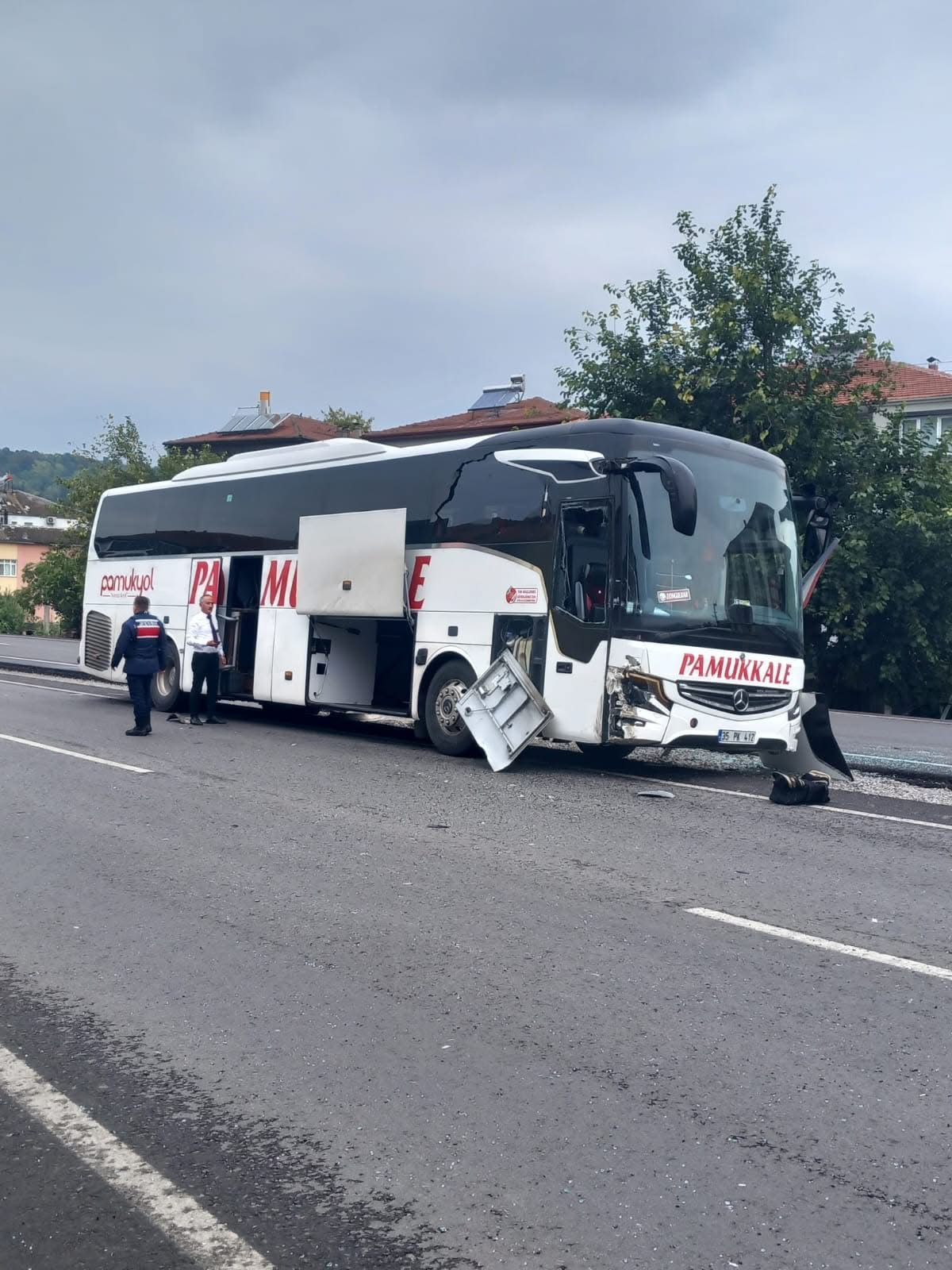 Zonguldak istikametinden Devrek istikametine giden 35 PK 412 plakalı otobüs sürücüsü aynı istikamette seyir eden 78 DD 822 plakalı beton mikserini ile çarpıştı.