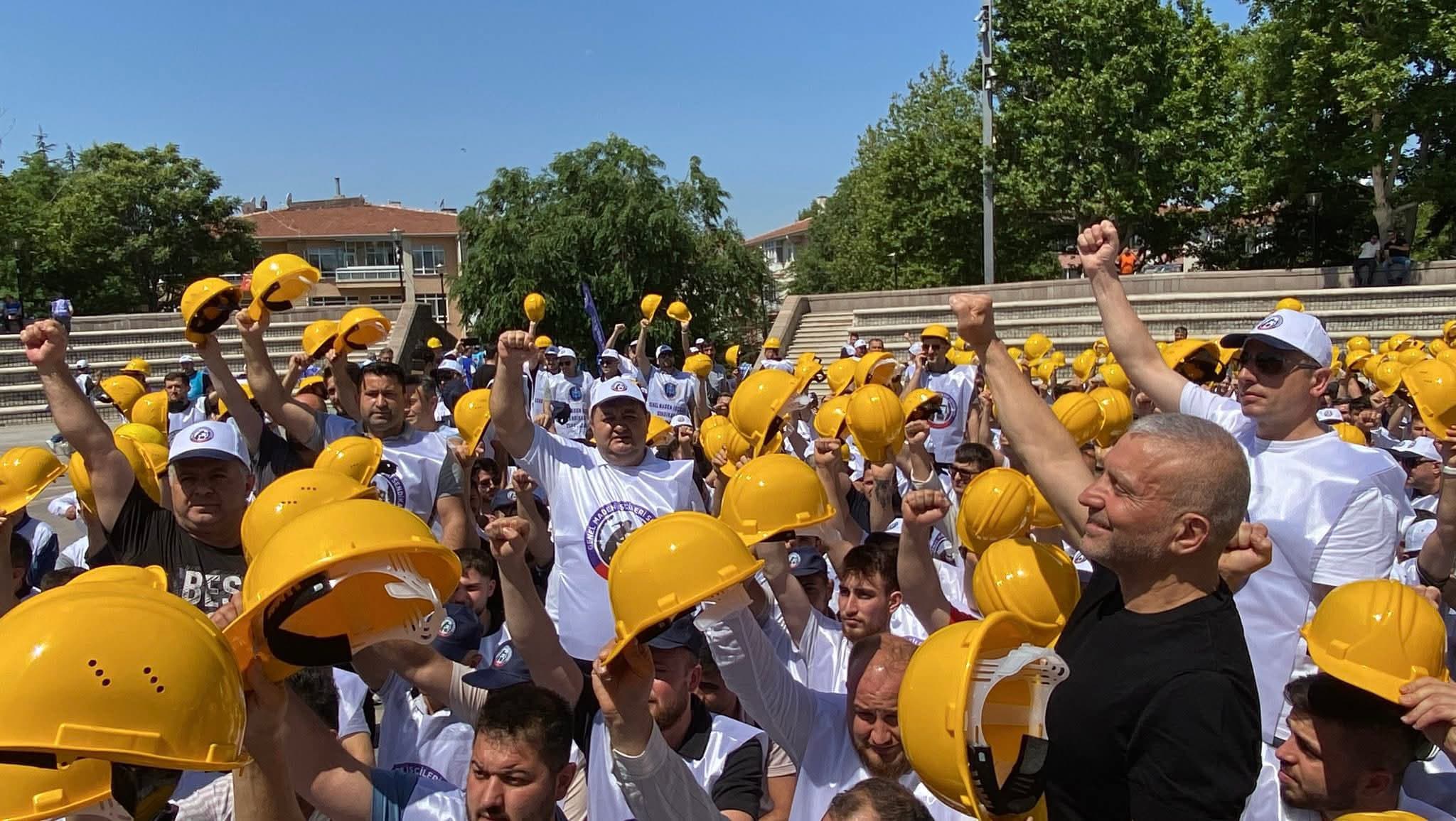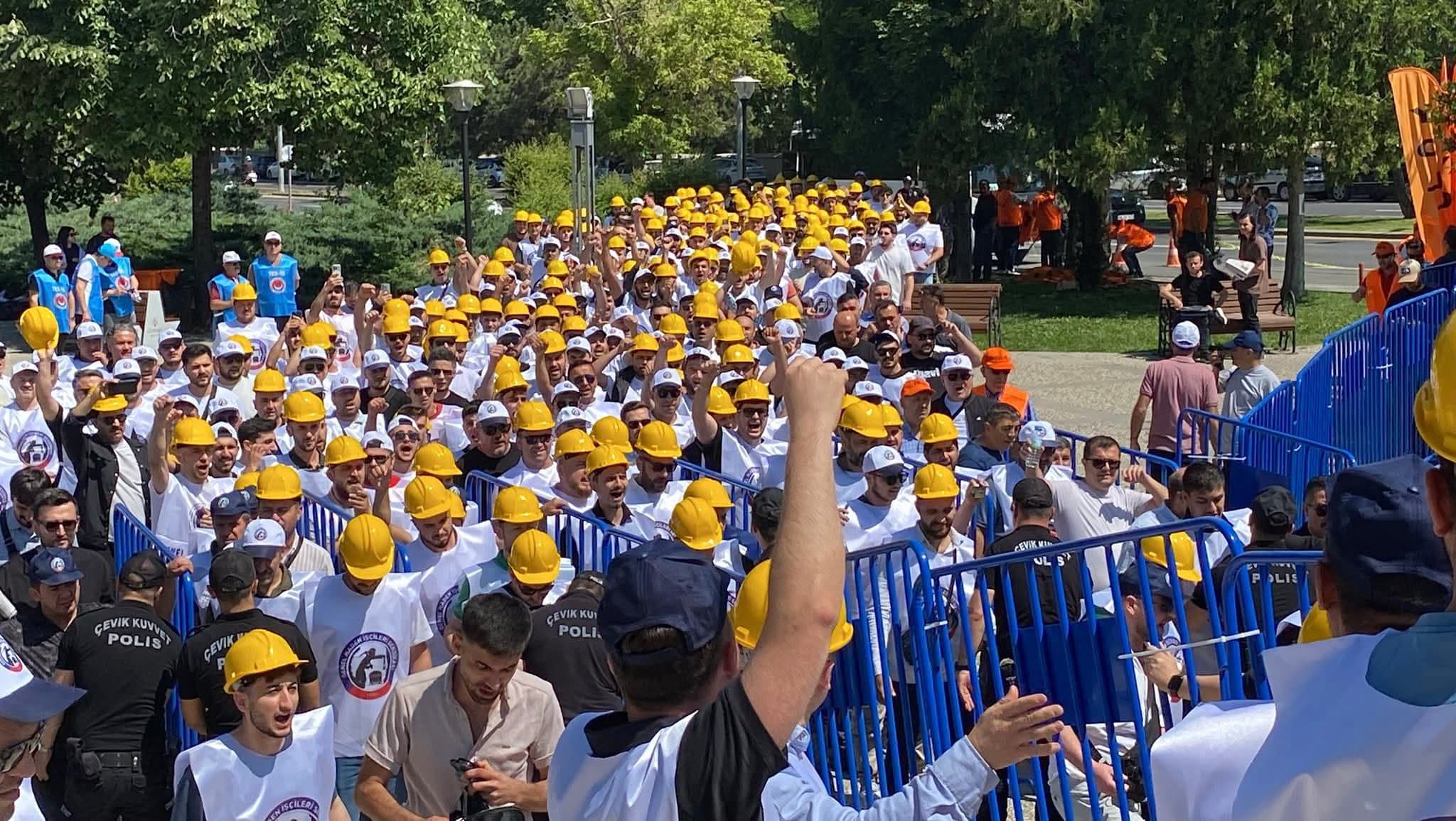 Genel Maden İşçileri Sendikası (GMİS) Genel Başkanı Hakan Yeşil ve yaklaşık bin maden işçisi, Türk-İş'in kamu çerçeve protokolünde hükümetin sunduğu zam teklifini protesto etmek amacıyla Ankara'da düzenlenen yürüyüşe katıldı.