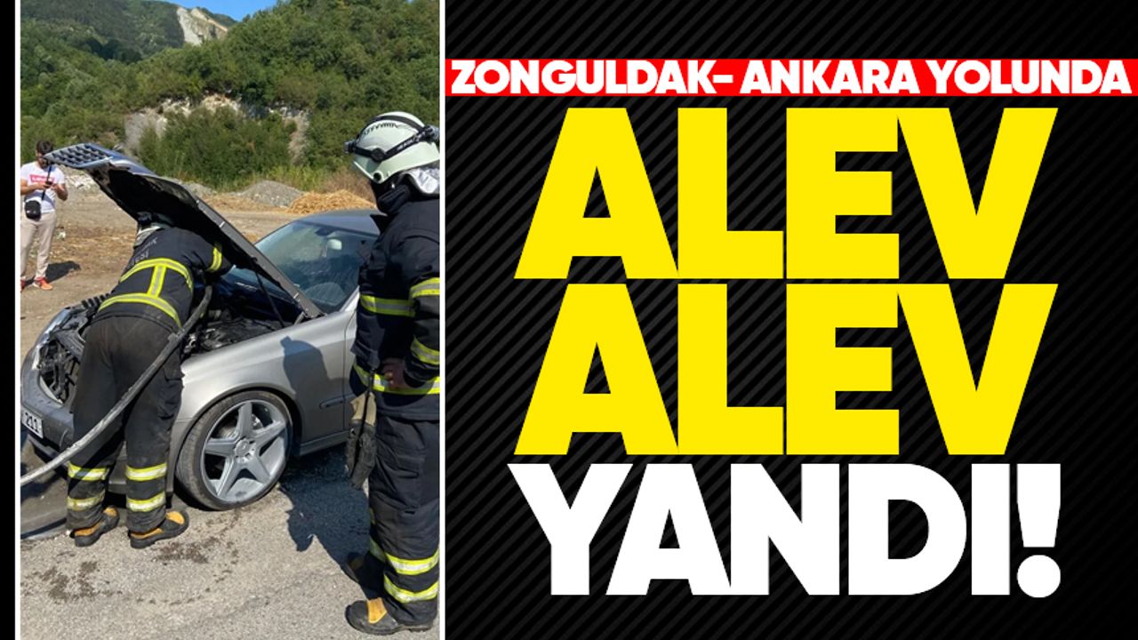 Zonguldak-Ankara karayolu Sapça mevkiinde seyir halindeki bir otomobil, henüz bilinmeyen bir nedenle aniden alev aldı.