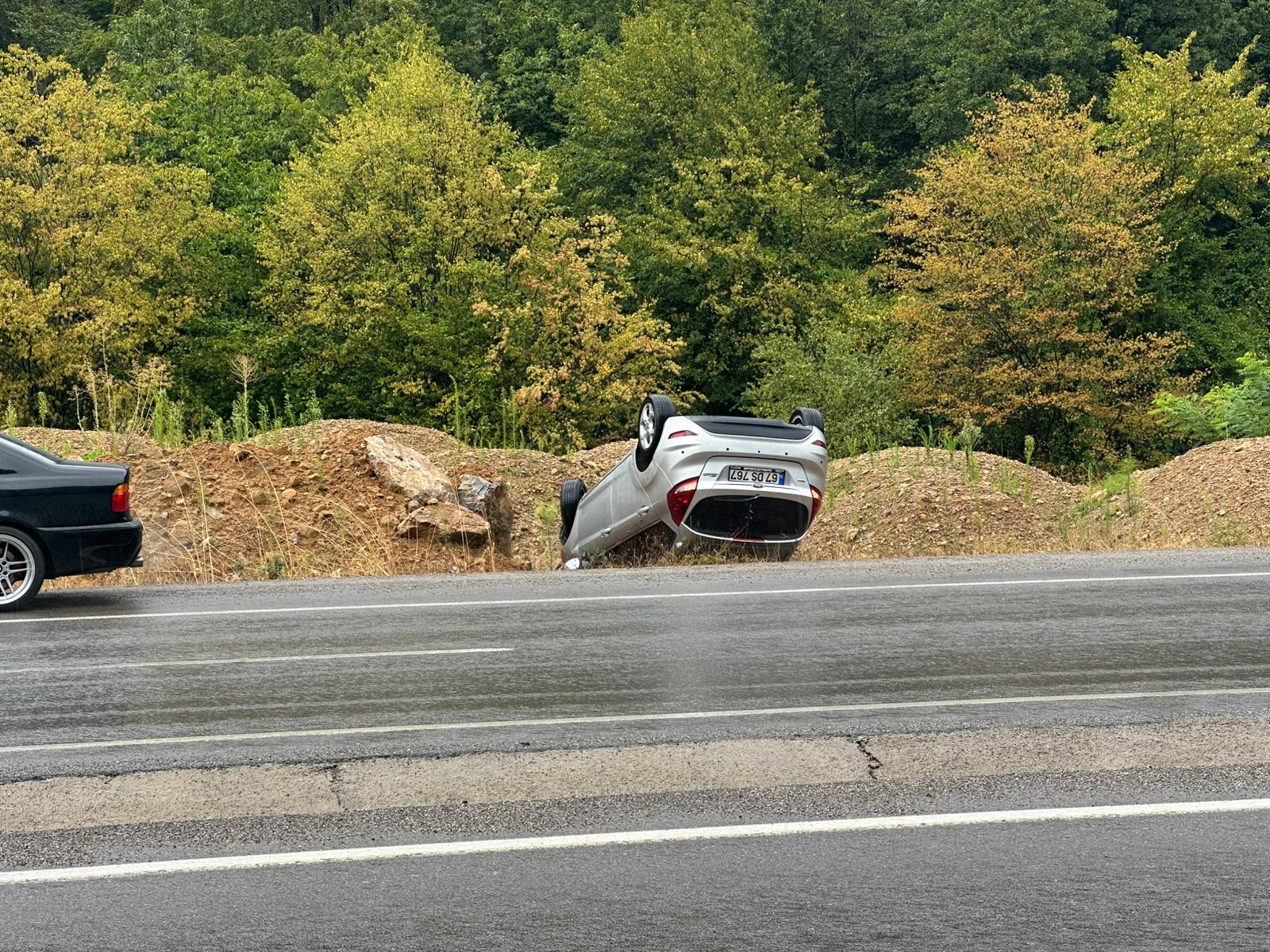 Kaza, öğlen saatlerinde Zonguldak-Ankara karayolu benzinlik mevkiinde meydana geldi. İddiaya göre; seyir halinde ilerleyen 67 DS 767 plakalı otomobil sürücüsünün direksiyon hakimiyetini kaybetmesi sonucu takla attı. Kazada araç sürücüsü ve yanında bulunan bir yolcu hafif şekilde yaralandı. İhbar üzerine olay yerine çok sayıda ambulans ve polis ekibi sevk edildi. Olay yerine gelen sağlık ekipleri yaralı vatandaşlara ilk müdahalesinin ardından ambulans ile Atatürk Devlet Hastanesine kaldırıldı.