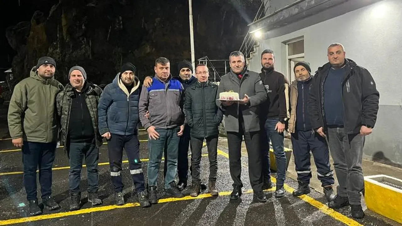 Yeni yılı Özel İdare personeli ile şantilerde karşılayan Genel Sekreter Ahmet Güral Karayılmaz, çalışanlarla birlikte yaş pasta keserek yeni yıllarını kutladı.