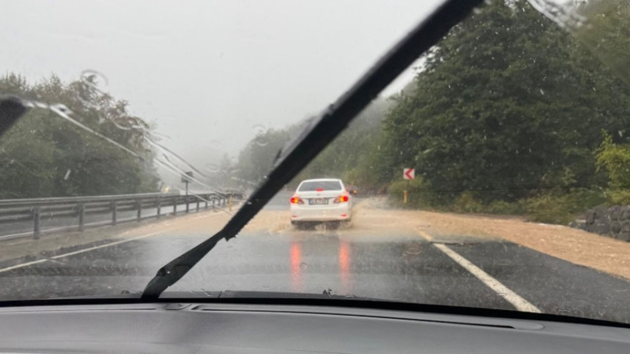 Zonguldak-Ereğli karayolunda sağanak yağış nedeniyle sürücüler zor anlar yaşadı.