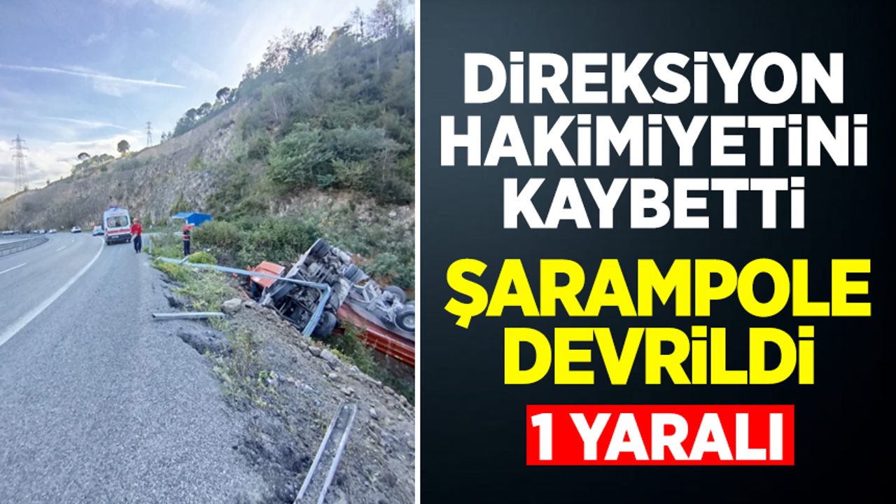 Edinilen bilgilere göre, S.A. idaresindeki 14 ABE 214 plakalı tır, iddiaya göre yola dökülen mazot nedeniyle kontrolden çıktı. Refüje çarpan araç şarampole devrildi.