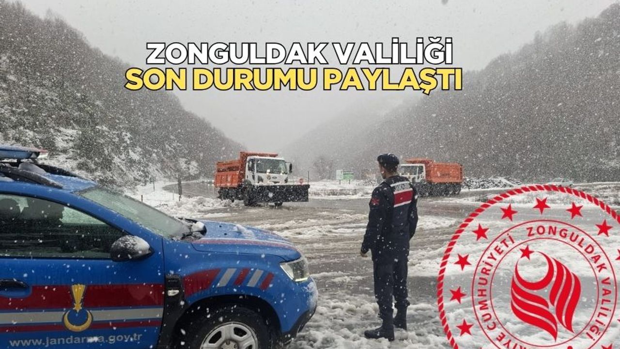 Zonguldak Valiliğinin paylaşımı şu şekilde;"Jandarma, Emniyet, Karayolları ve İl Özel İdaresi başta olmak üzere tüm ekiplerimiz, sahada çalışmalarını yoğun şekilde sürdürmektedir. Kar yağışının etkili olduğu bölgelerde tuzlama, yol açma ve trafik akışını düzenleme çalışmaları aralıksız devam etmektedir. Olası olumsuzluklara karşı ekiplerimiz kritik noktalarda hazır beklemekte, sürücülerin güvenliği için kontroller titizlikle yürütülmektedir.