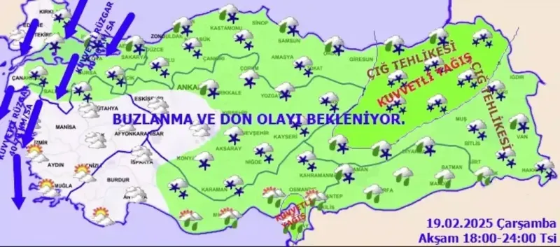 Kar yağışı için uyarılarda bulunulurken bazı bölgelerde buzlanma ve don uyarısı yapıldı.