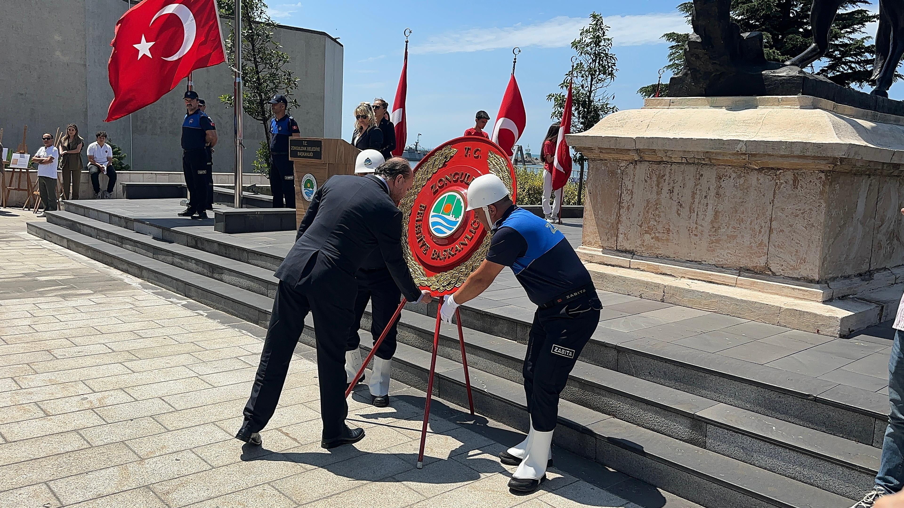 Valilik önünde düzenlenen törende Zonguldak Belediye Başkan vekili Atınç Kayınova Atatürk Anıtı’na çelenk bıraktı.