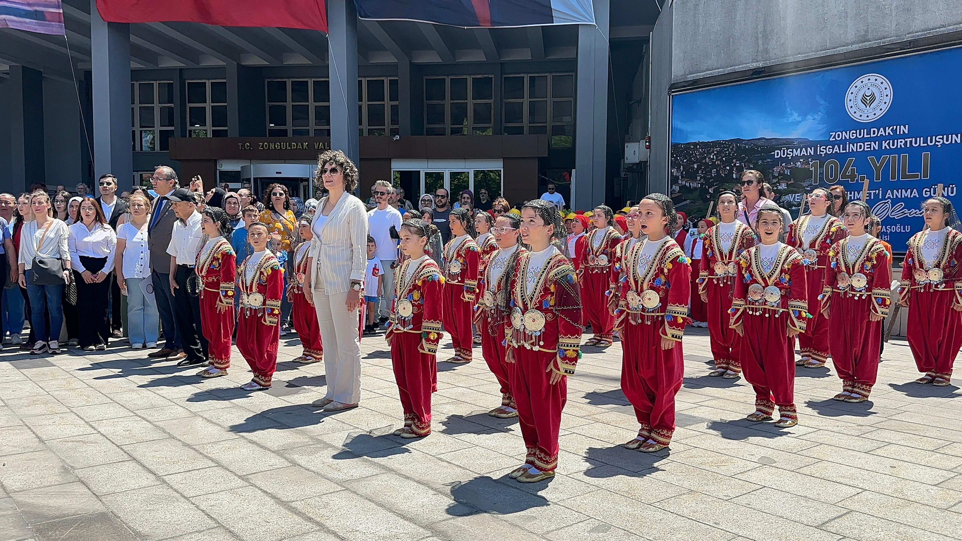 Zonguldak’ın düşman işgalinden kurtuluşunun 104’üncü yılı Zonguldak Valiliği önünde çelenk çoşkuyla kutlandı.