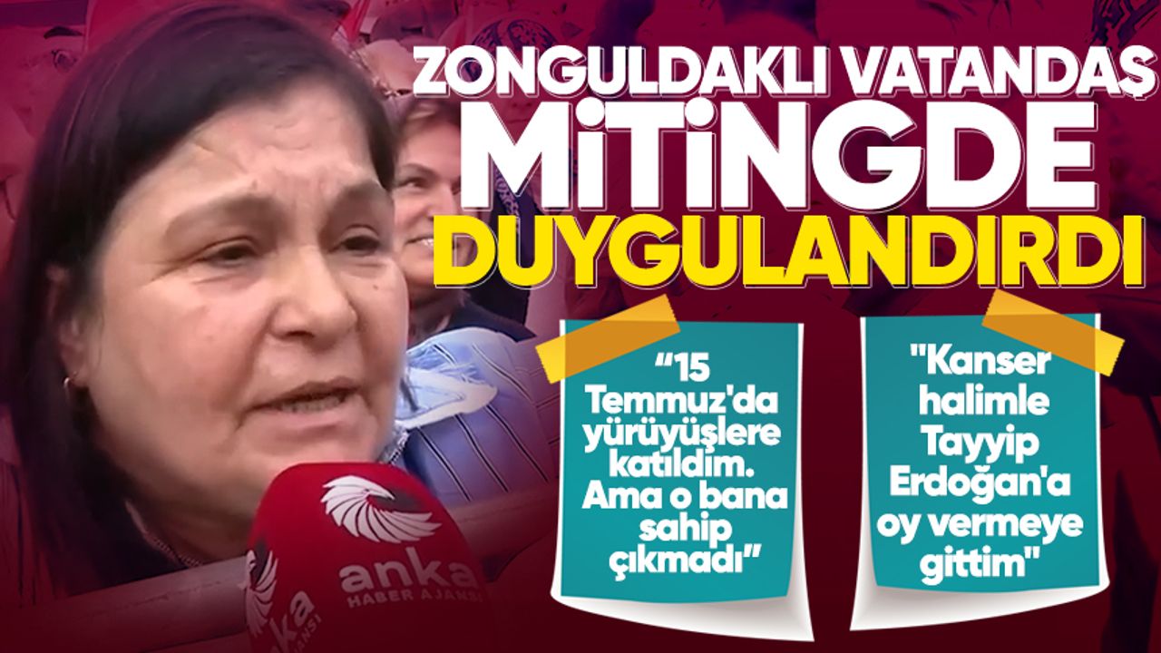 Kanser hastalığı geçirdiğini ifade eden vatandaş, "Kanser halimle Tayyip Erdoğan'a oy vermeye gittim. 15 Temmuz'da yürüyüşlere katıldım. Ama o bana sahip çıkmadı. O, bu devletimize sahip çıkmadı. Ben de bu saatten sonra CHP diyorum. Ama yıllardır da AK Parti kadın kollarında çalışıyorum. Şu andan itibaren CHP en büyüktür" dedi.