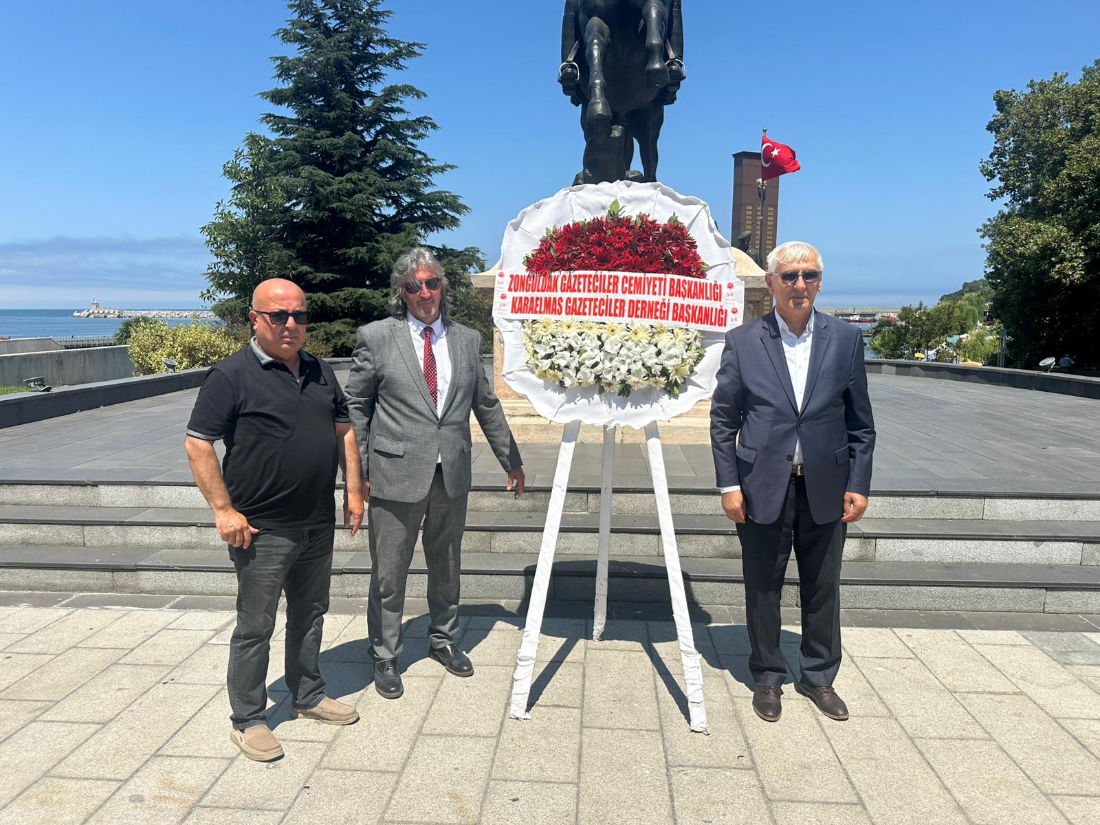 Zonguldak Gazeteciler Cemiyeti Başkanı Derya Akbıyık, Karaelmas Gazeteciler Derneği Başkanı Bahattin Arı ve Zonguldak Gazeteciler Cemiyeti Çaycuma Temsilcisi Davut Uyar, Atatürk Anıtı’na çelenk sundu. Törende saygı duruşunda bulunuldu, ardından İstiklal Marşı okundu.
