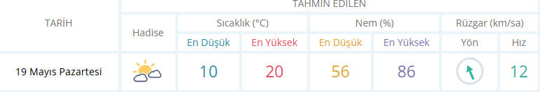 19 Mayıs 2025 Pazartesi günü Meteoroloji Genel Müdürlüğü’nden alınan bilgilere göre bugün Zonguldak'ta hava durumu parçalı bulutlu olacak.