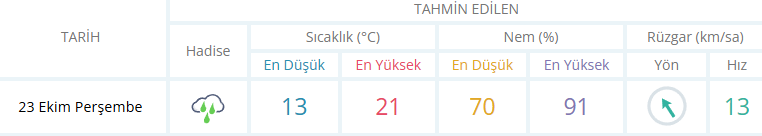 23 Ekim 2025 Perşembe günü Meteoroloji Genel Müdürlüğü’nden alınan bilgilere göre bugün Zonguldak'ta hava durumu sağanak yağışlı olacak.