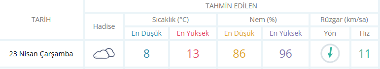 23 Nisan 2025 Çarşamba günü Meteoroloji Genel Müdürlüğü’nden alınan bilgilere göre bugün Zonguldak'ta hava durumu çok bulutlu olacak.