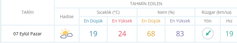 7 Eylül 2025 Pazar günü Meteoroloji Genel Müdürlüğü’nden alınan bilgilere göre bugün Zonguldak'ta hava durumu parçalı bulutlu olacak.