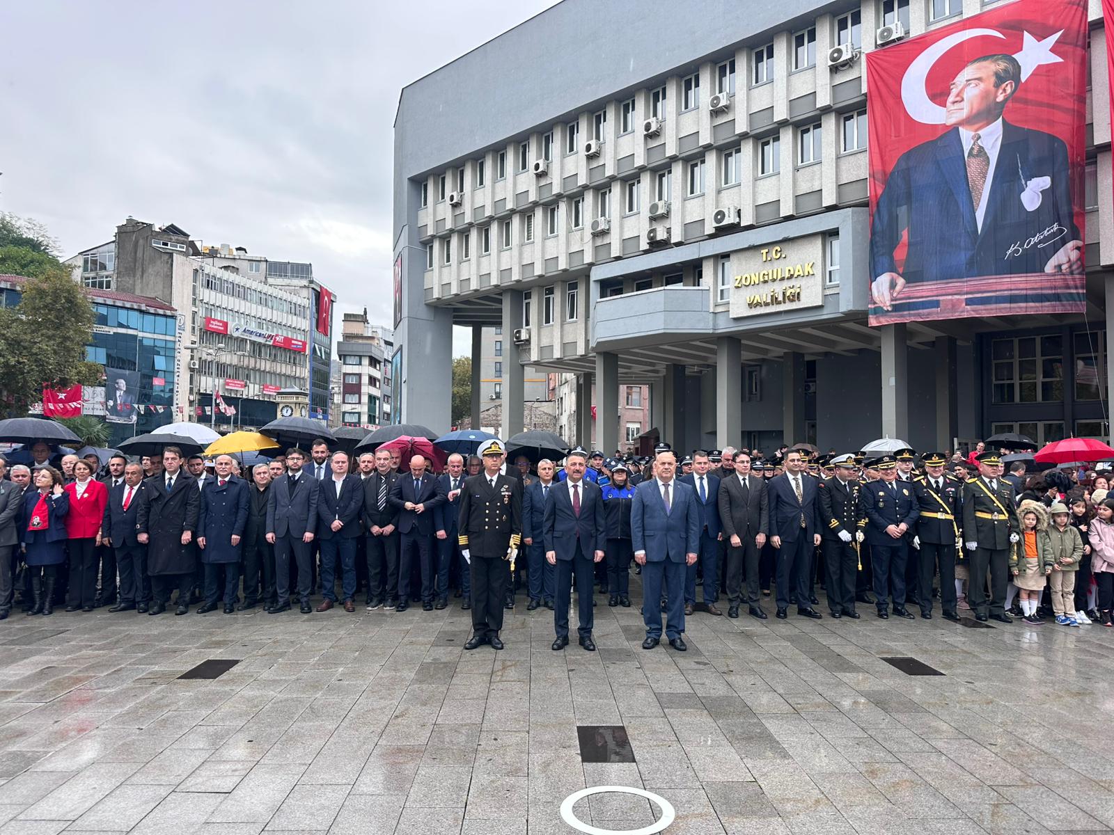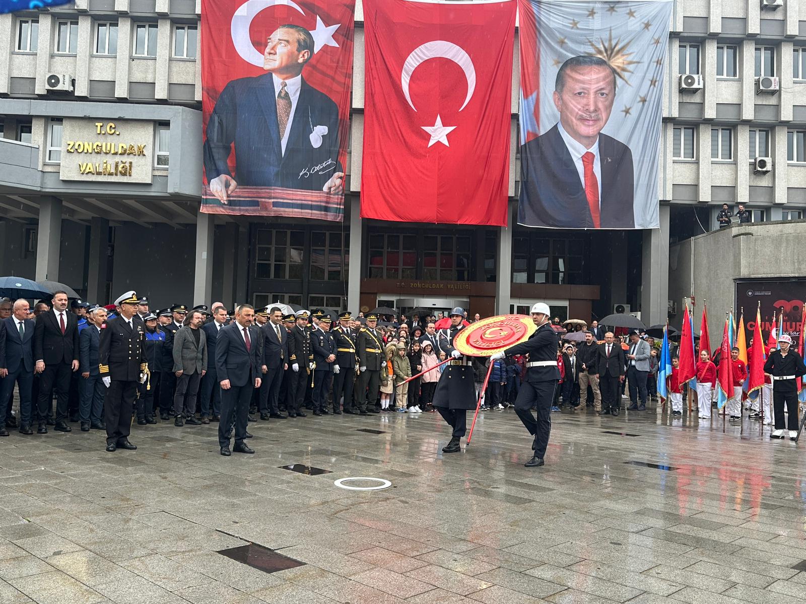 Zonguldak Valiliği önünde Atatürk Anıtı’na Valilik, Belediye ve Garnizon Komutanlığı çelenklerinin sunumu gerçekleştirildi.