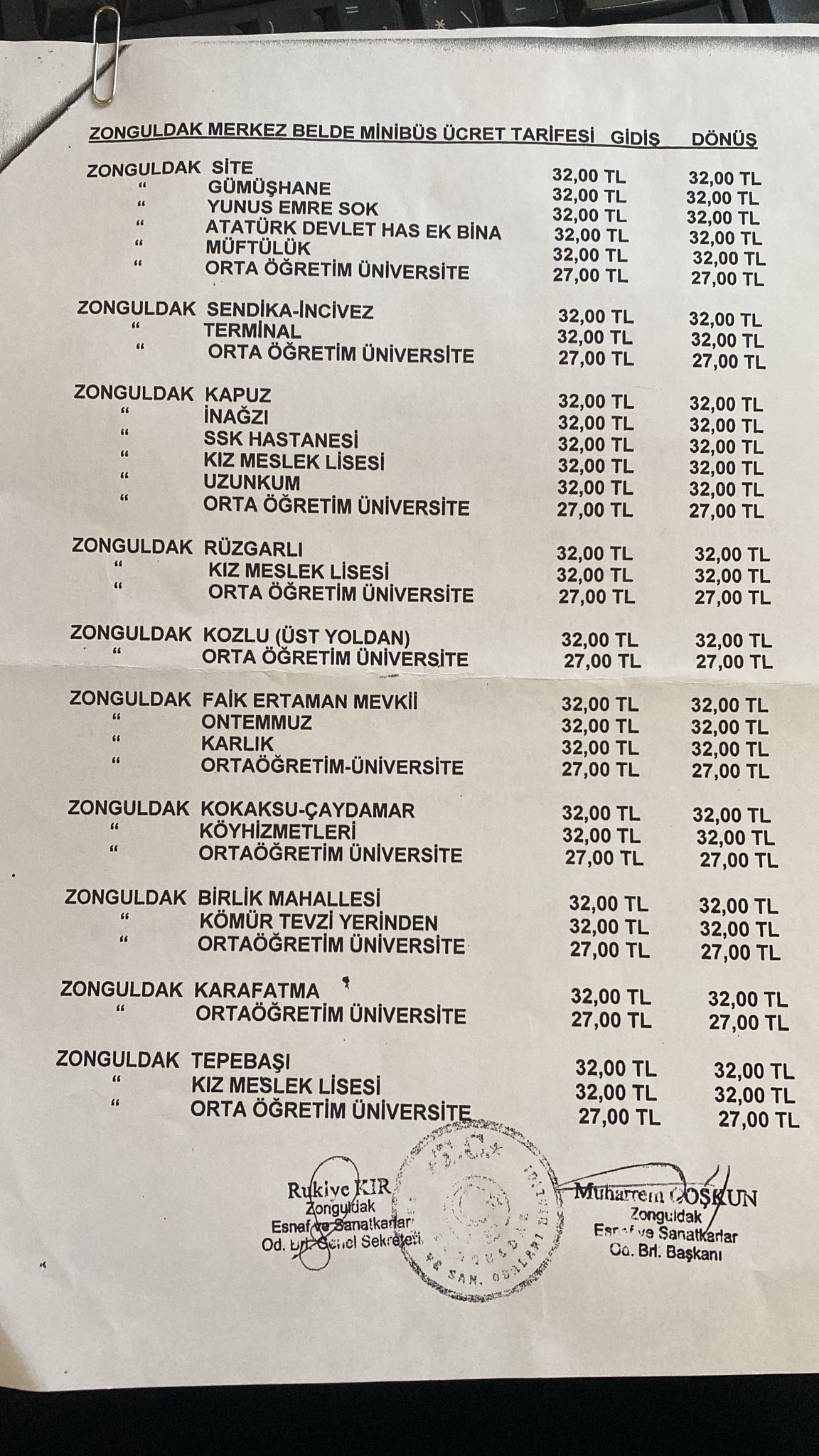zonguldak’ta 25 TL olan dolmuş ücretleri Nisan ayının sonunda 32 TL olacak. Temmuz 2024'te 17 TL'den 25 TL'ye yükselen dolmuş ücretleri, nisan 2025'in sonunda 32 TL'ye yükselecek.