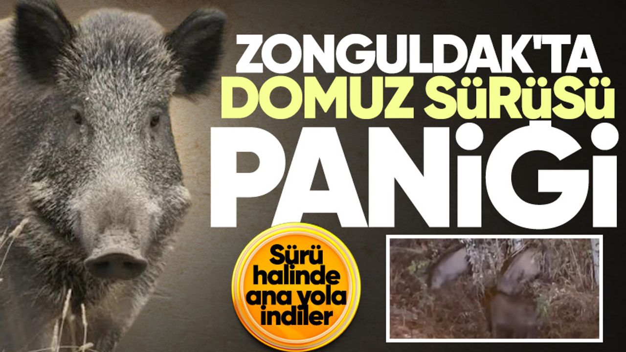 Olay, Devrek ilçesine bağlı Çaydeğirmeni beldesi Alparslan Köyü yolu üzerinde meydana geldi. Yemek bulmakta zorlanan yaklaşık 5 domuzdan oluşan sürü ana yola çıktı. Bir süre yol kenarında dolaşan domuz sürüsünde yavruların da bulunması dikkat çekti.